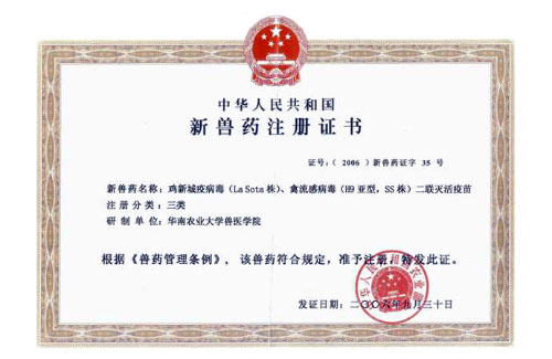 雞新城疫-禽流感(H9)二聯滅活疫苗
