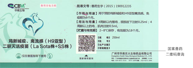 雞新城疫-禽流感(H9)二聯滅活疫苗