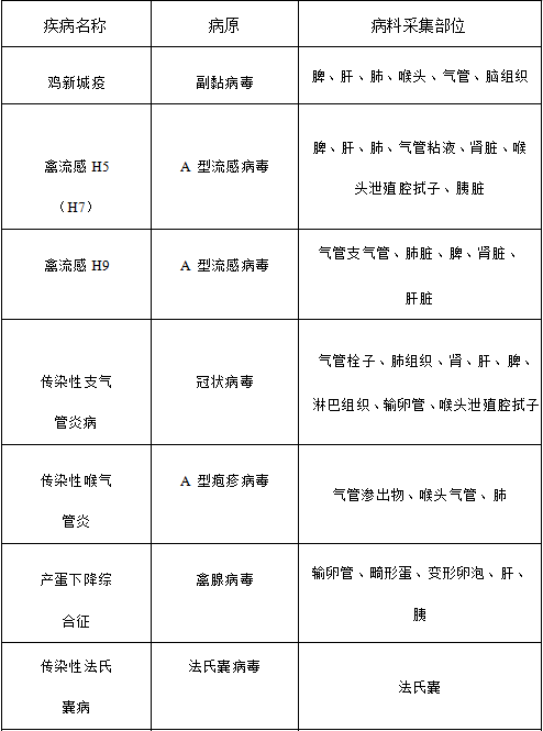 當前家禽疾病流行情況比較復雜,混合感染和繼發(fā)癥比較多見,臨床癥狀和病理變化也是非典型的多,所以實驗室診斷是動物疾病診斷的重要措施。同時,對病原跟蹤進行監(jiān)測,能了解到疾病的流行動態(tài)。采樣的部位、方法、樣品的保存、運輸都直接關(guān)系到最終的診斷結(jié)果,本文就家禽的病料采集小結(jié)了一些采集的原則及方法,僅供參考。