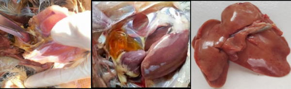 觀察雞群狀況,根據發病日齡、臨床癥狀、流行病學和死亡規律;解剖察看病理變化,若有上述特征性病變則可初步診斷;進一步診斷還需要采集病料(主要肝、腎、肺臟等病變組織),實驗室做核酸檢測。