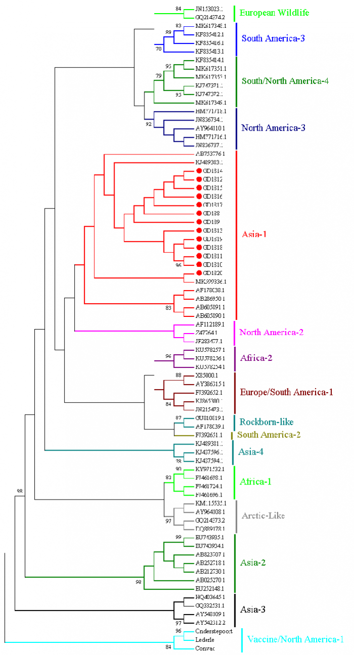 當下國內寵物疫苗市場由進口產品所主導,但是合法注冊的進口產品并不能滿足國內需求。大多數犬用CDV進口疫苗所包含的都是America-1型毒株,而國內主要流行的是Asia-1型毒株。從進化譜系分析上來看疫苗株America-1所在的分支與流行的Asia-1型毒株距離較遠,基因差異可能導致中和表位的顯著變化,從而可能導致疫苗免疫失敗。此外國外有研究報道CDV的South America-3型毒株仍可使接種過包含America-1型毒株疫苗的犬發病。由此可見符合國情的疫苗是才是CD防控的需求所在。